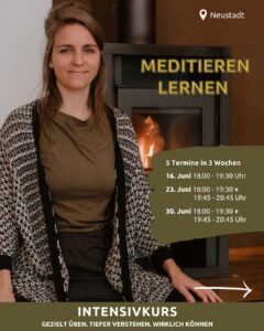 Melde dich jetzt für unseren Meditations-Intensivkurs an und sichere dir bis zum 30.04. den Early-Bird-Preis! 👉 Hier anmelden Dienstags 5 Termine in 3 Wochen |