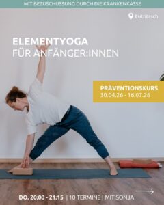 👉 Hier buchen Element Yoga und Alignment genau erklärt. Finanziell unterstützt von deiner Krankenkasse 🧘 Starte jetzt deine Yogapraxis in unserem Studio in Eutritzsch mit Sonja!